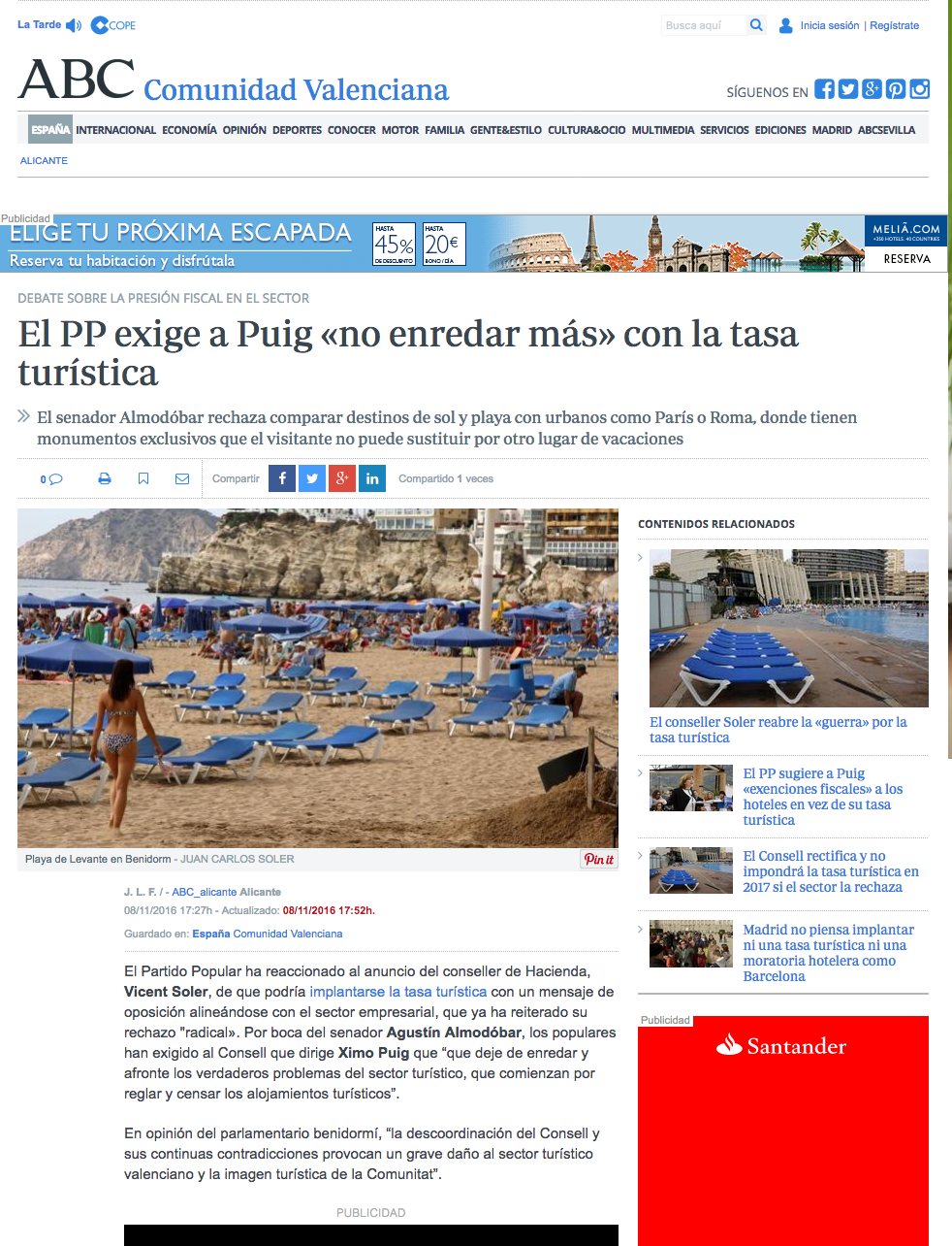 • “El PSOE trata al sector turístico con auténtico desprecio”
